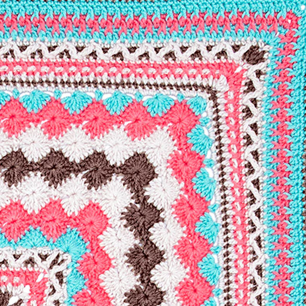 This afghan is best suited for intermediate crocheters who are comfortable reading detailed instructions and working in the round. While no single technique is overly difficult, the combination of stitches makes this a project that builds skill and confidence as you go.